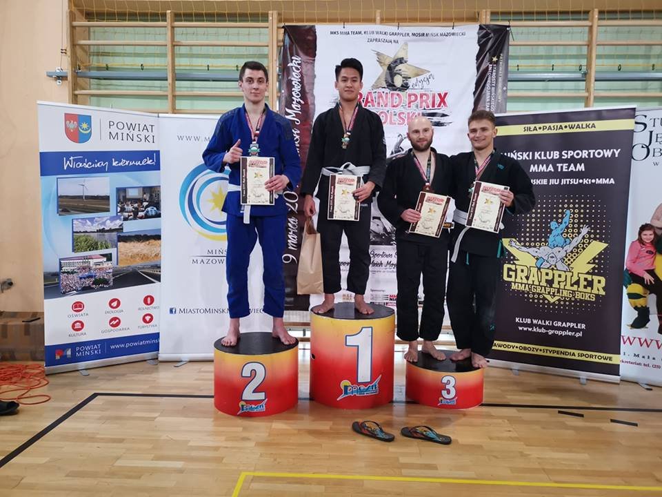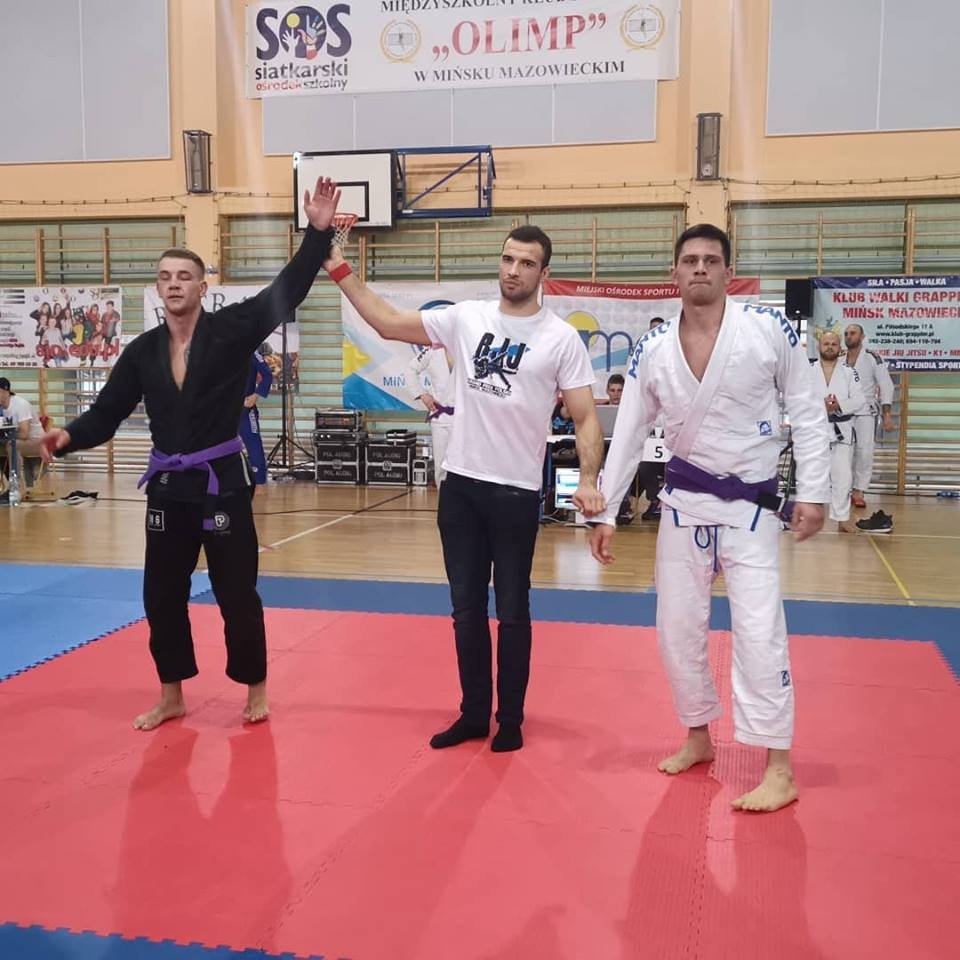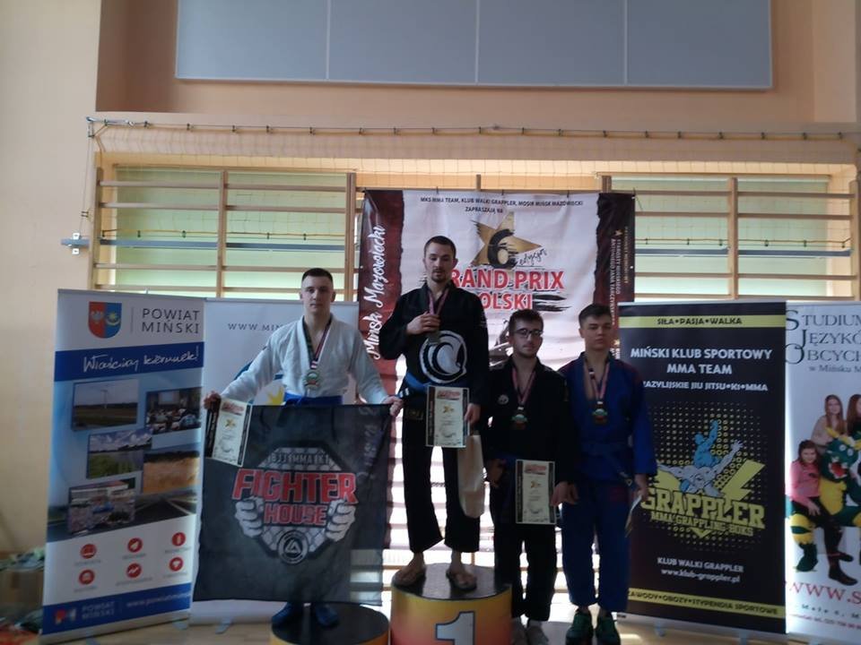 Smagus savaitgalis prabėgo „Fighter House” komandai Lenkijoje vykusiame VI Grand Prix Polski BJJ turnyre iškovojome, net 6 medalius ir visi pateko į finalus savo svorio kategorijose! Du aukso ir keturi sidabro medaliai. Matas Stebuliauskas padarė labai gera debiutą purpurinių diržų grupėje. Jis nugalėjo visus keturis savo varžovus rankos laužimo veiksmais ir iškovojo auksą! Laurynas Petruškevičius ir Simonas Poškus nugalėję savo varžovus, susitiko finale. Varžovai iš apmaudo, net neatėjo atsiimti brozos medalių 😀. Laurynas turėdamas daugiau patirties iškovojo auksa, Simonas- sidabrą. Mykolas Korsakovas nugalėjo du savo varžovus skausmingais veiksmais pakeliui į finalą mėlynuose diržuose. Mykolas iškovojo sidabrą būdamas jauniausiu savo grupėje (17 metų) suaugusių kategorijoje💪! Tomas Navickas pakeliui į finalą nugalėjo, net 4 priešininkus. Penktoje apylygėje kovoje nusileido ilgiau laiko sportuojančiam priešininkui. Tomui po kovų buvo suteiktas mėlynas BJJ diržas! Mažasis klubo atstovas Gerardas Uktveris nugalėjęs tris varžovus, finale nusileido dviem metais vyresniam priešininkui ir iškovojo sidabrą! Iškovojus tokį kiekį medalių Lenkijoje,kurioje BJJ yra labai populiarus sportas,parodo, kad mes einame teisingu keliu! 🤙 OSS!